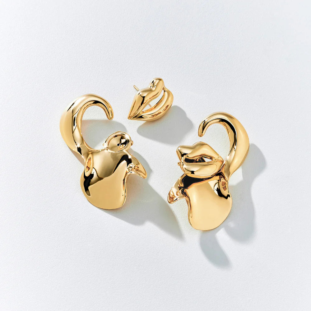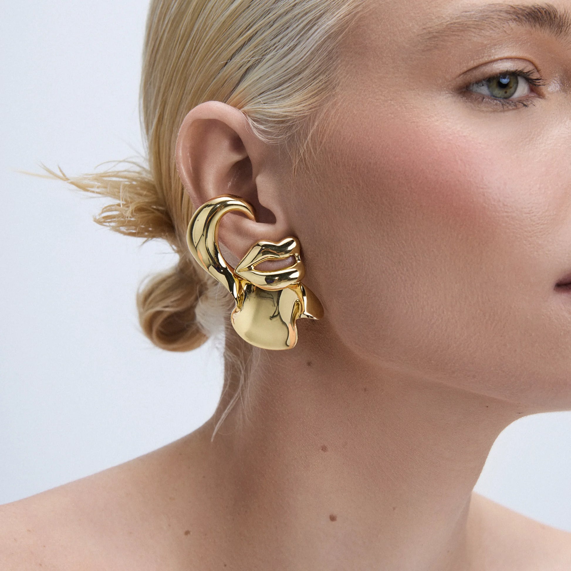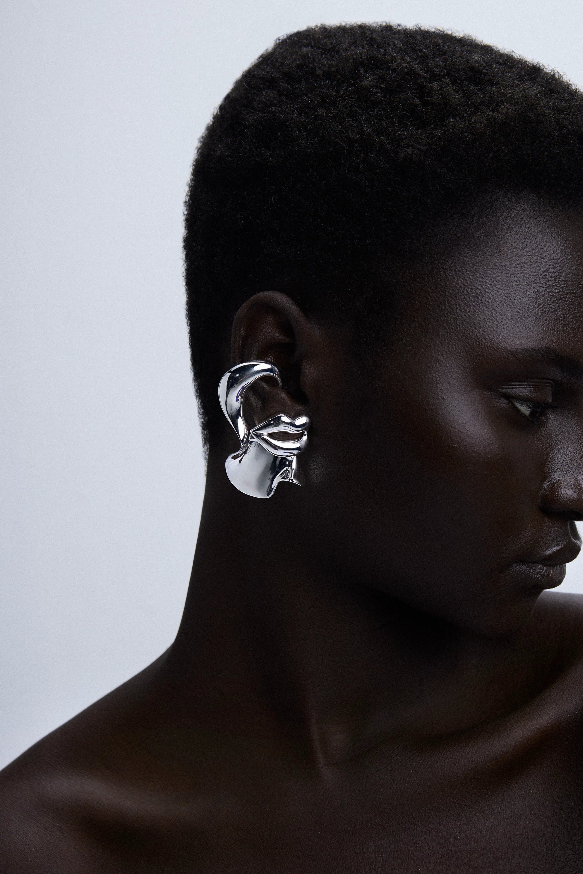 “It’s a strong babado!” This expression guides our creation, bringing something surprising and scandalous. The playful idea of the little mouth at the earlobe and the stylized ear shaped like a strong and powerful flounce complement each other in a modern piece with a high-shine and polished finish.