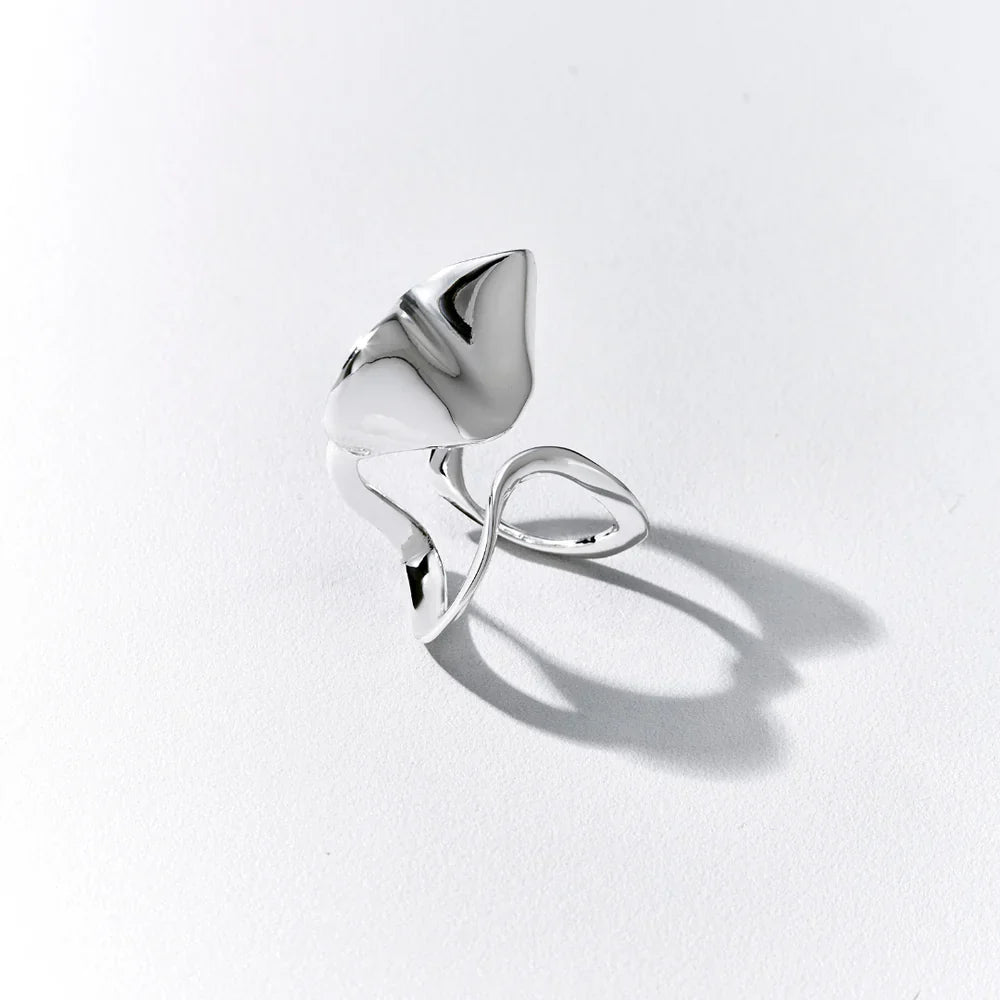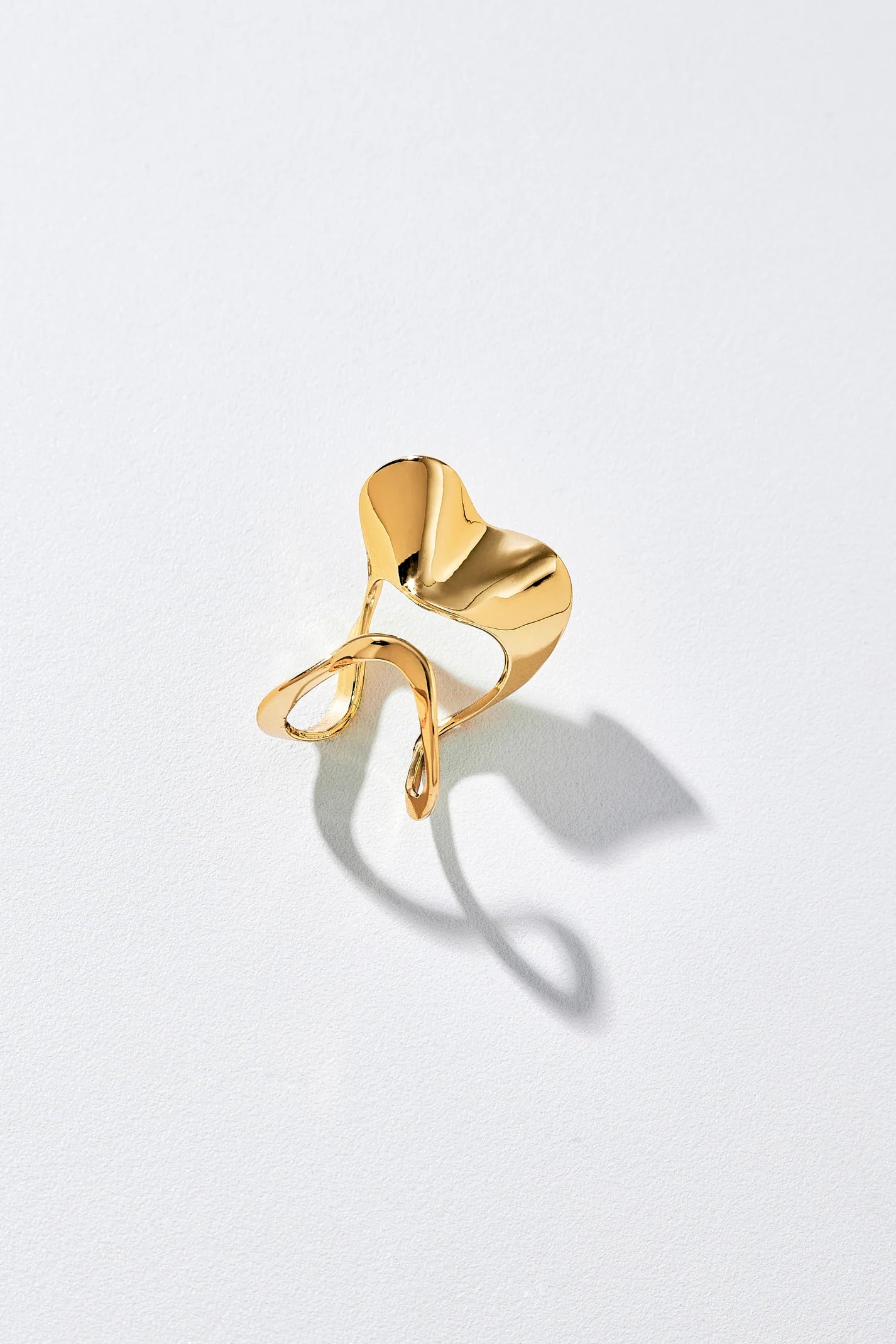 Inspired by the flounces in godet cut, the ear jacket style earrings bring modernity and style in their way of use, with the possibility of their base being worn in everyday settings. Their highly polished and smooth finish is reminiscent of the finest haute couture fabrics.