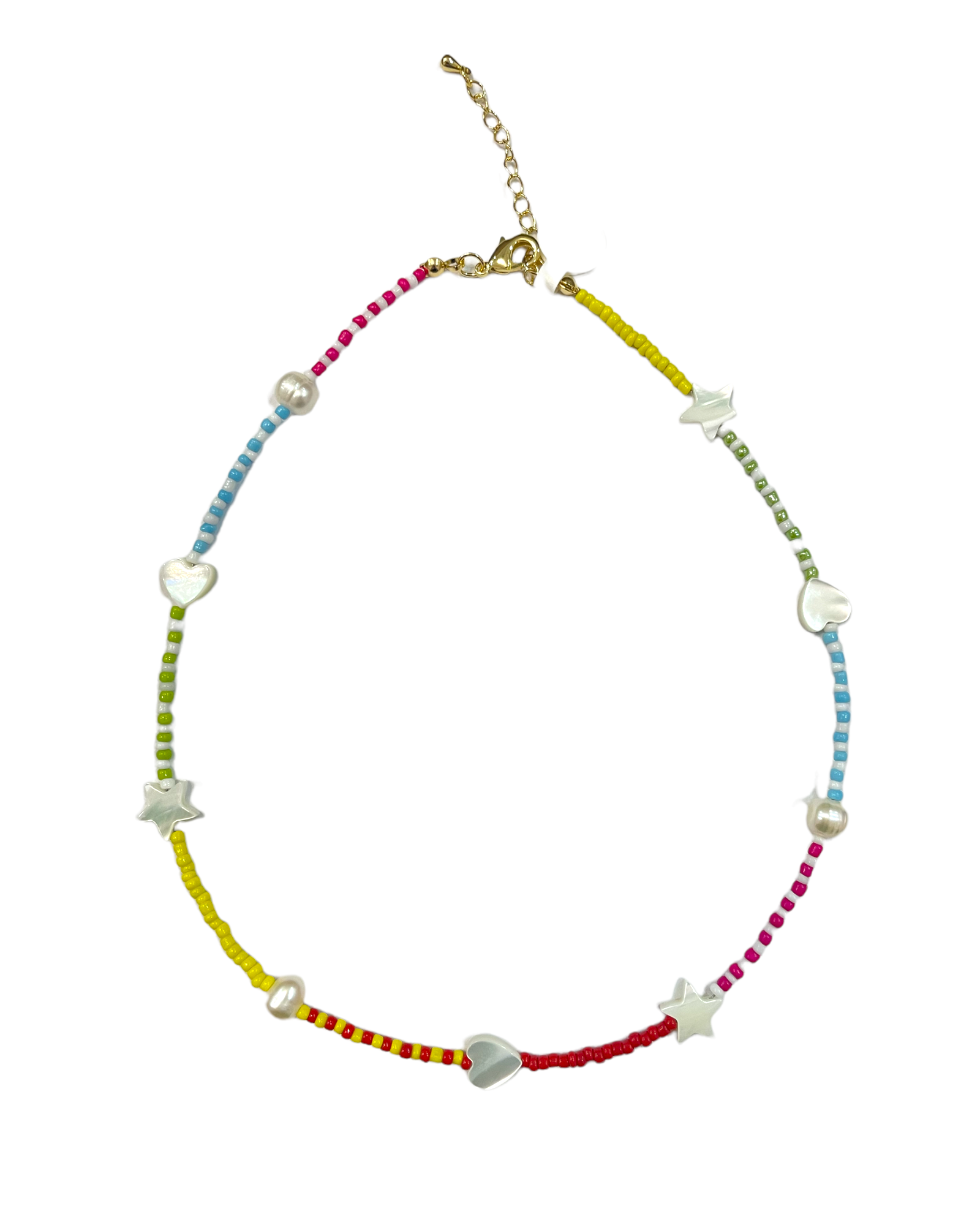 MATERIALES: MOSTACILLAS, ESTRELLAS Y CORAZONES EN NACAR + PERLAS NATURALES