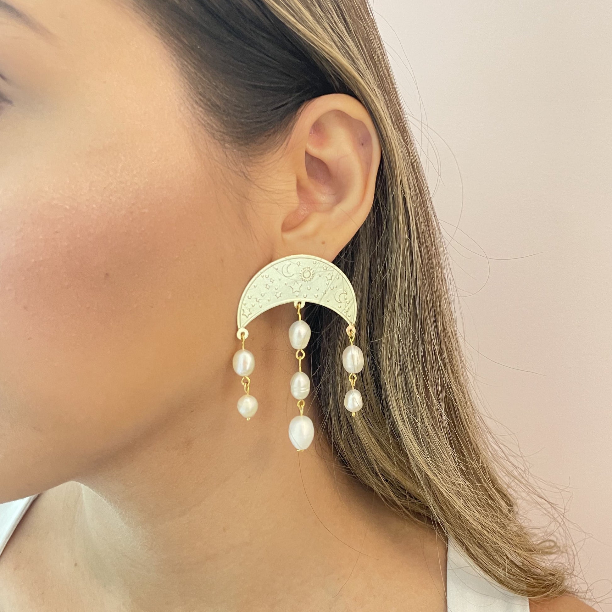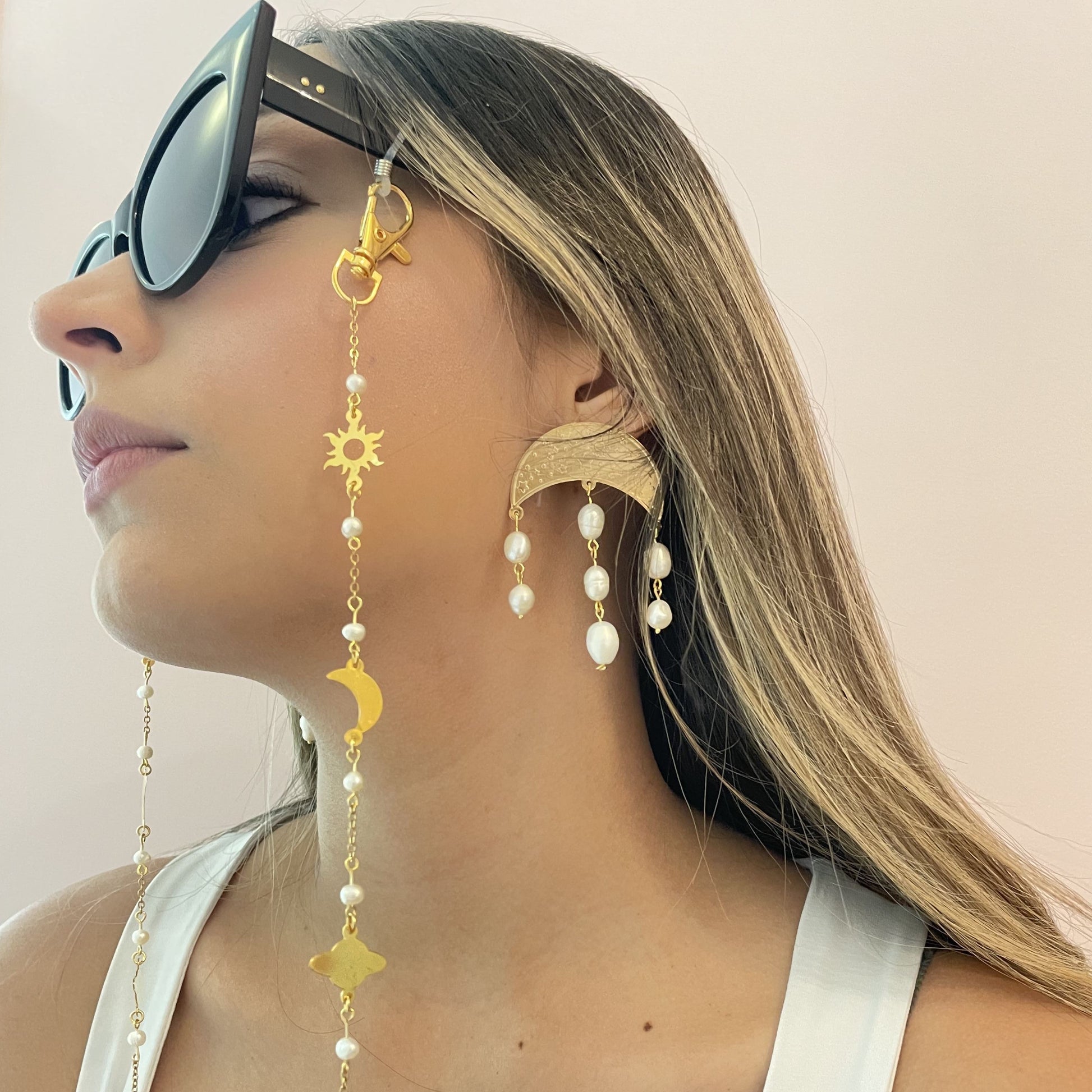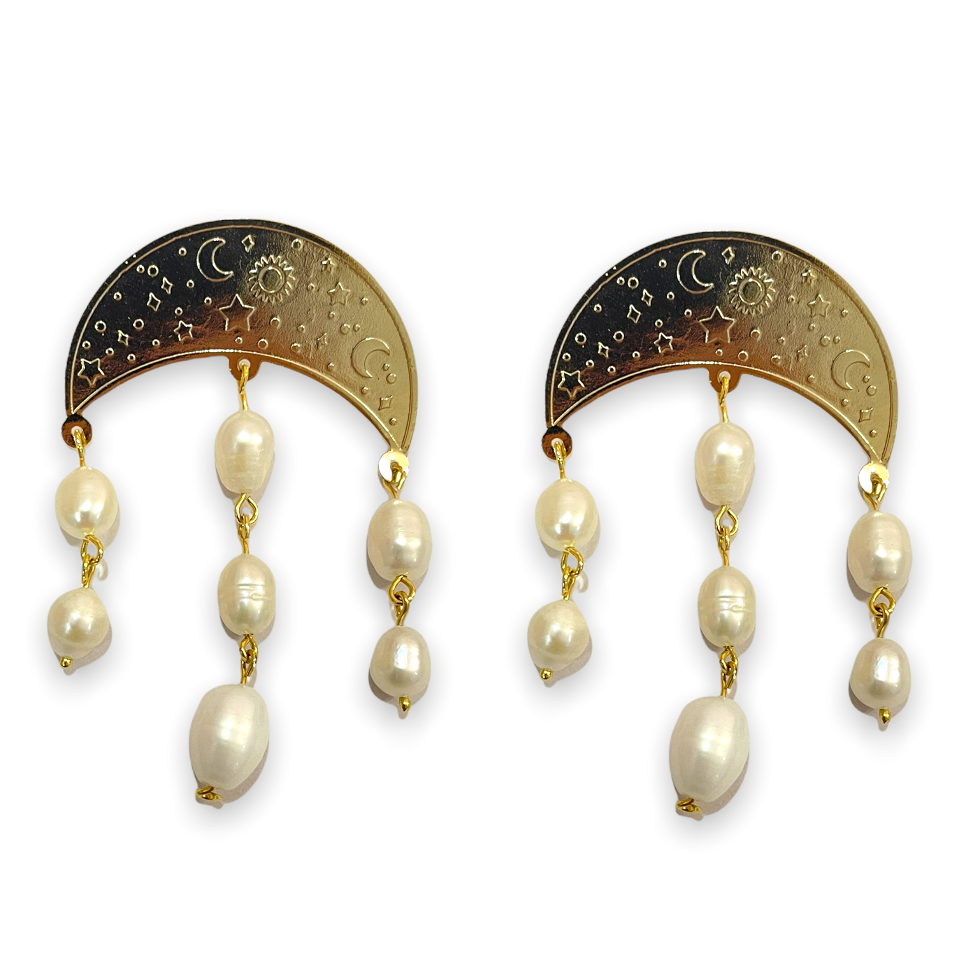 MATERIAL: PERLAS DE AGUA DULCE; BRONCE CON BANO DE ORO 24K