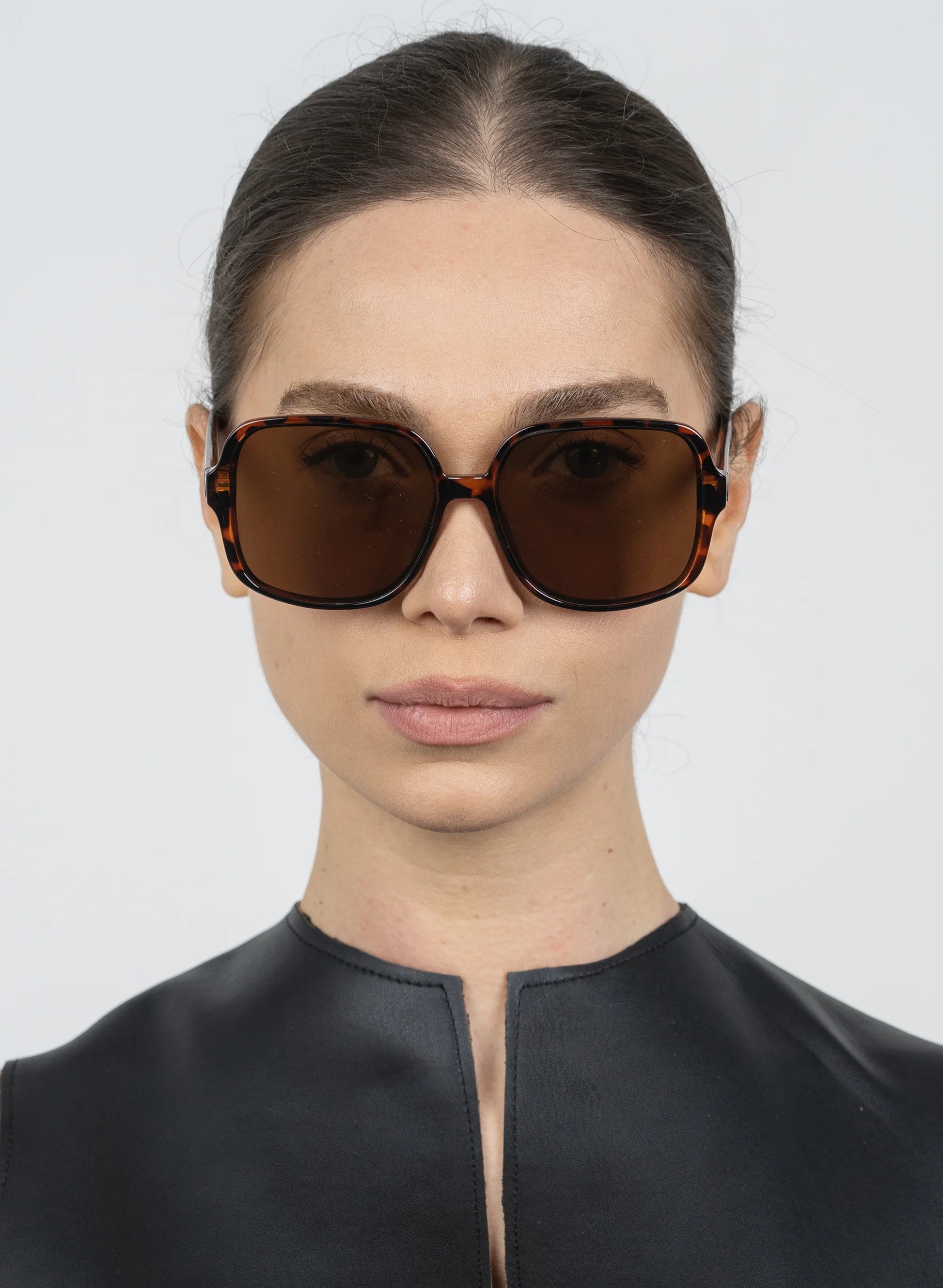 Ligeras y elegantes sin esfuerzo, Annie presenta un delicado marco redondeado en carey transparente combinado con lentes marrones suaves.
