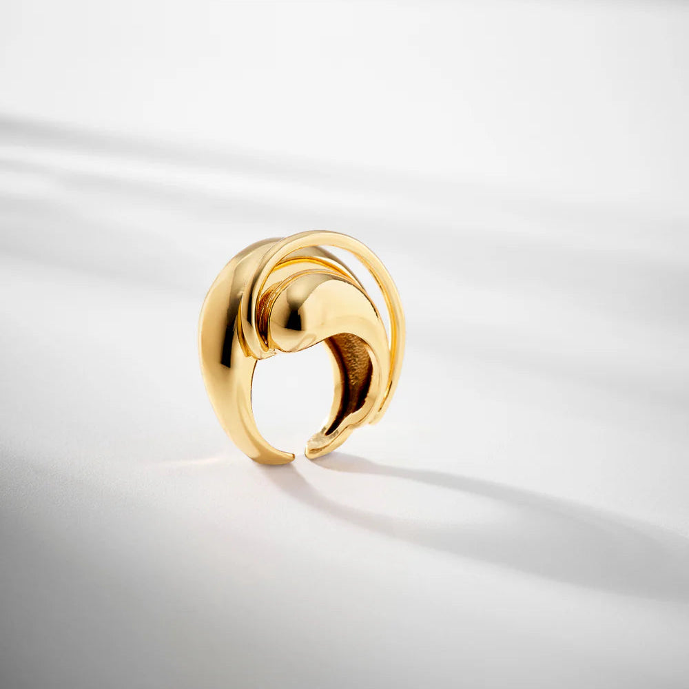 El anillo Ciclo encarna un estilo minimalista y moderno, adornando las manos con elegancia, realzada por su elaboración artesanal en metales nobles con baños de oro y plata.