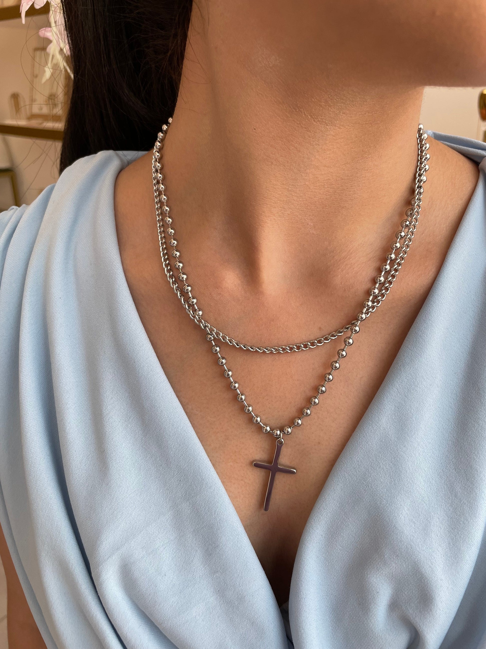 COLLAR DE CRUZ PLATEADO