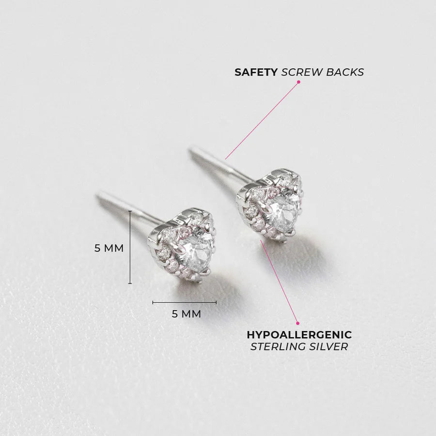 Tamaño de los pendientes: corazón de 5 mm; Poste de pendiente roscado de 7 mm